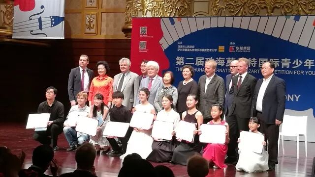 由珠海市人民政府和奥地利萨尔茨堡莫扎特音乐与表演艺术大学共同主办的第二届珠海莫扎特国际青少年音乐周共有34个国家343名选手报名,通过预选赛遴选了120位优胜者参加,于2017年9月12日在珠海揭开古典乐战幕。我校小提琴选手经过十一天三轮的激烈竞争,在三个组别取得骄人成绩:A组:王仕含(附中初一学生)获得第一名和最佳随想曲奖(指导教师王泓);B组:罗超文(附中高二学生)获得第三名和最佳观众奖(指导教师王泓);C组:蒋熠颖(本科二年级)获得第二名和最佳随想曲奖(指导教师张提)。