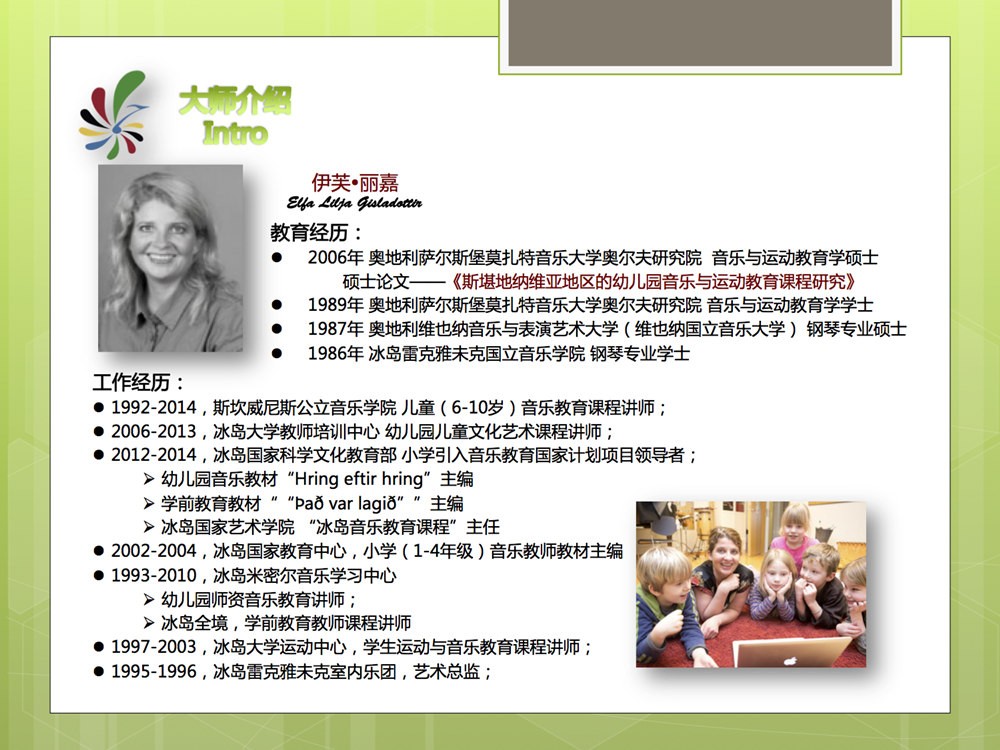 奥地利莫扎特音乐学院奥尔夫研究专家、国际著名奥尔夫教学法专家ELFA女士