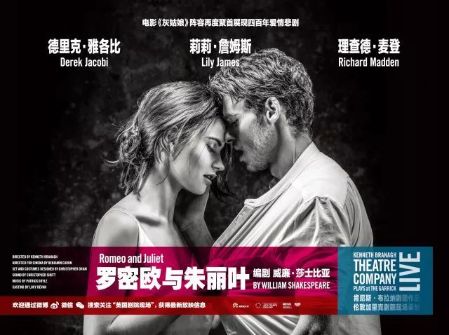布拉纳剧院现场呈现的是罗伯•阿什福德和肯尼斯•布拉纳联合执导的新版本,由HBO电视剧《权力的游戏》中的“少狼主”理查德•麦登饰演罗密欧,《唐顿庄园》中的美少女莉莉•詹姆斯饰演朱丽叶。