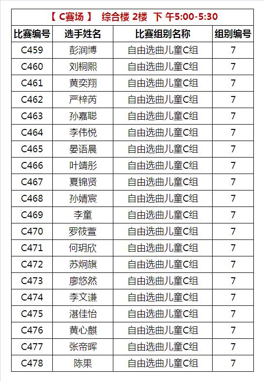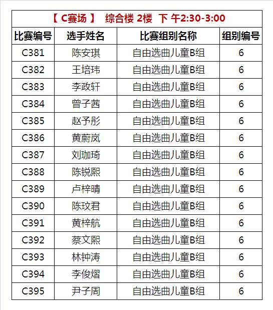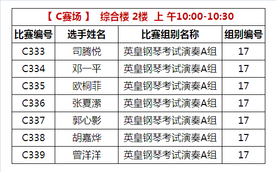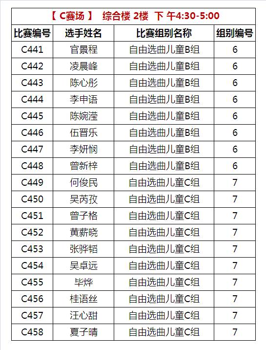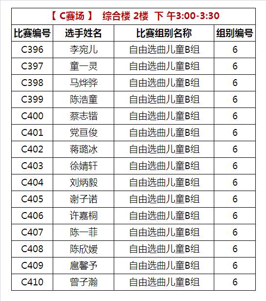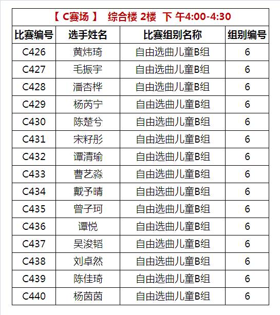 C比赛场 下午比赛时间
