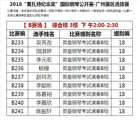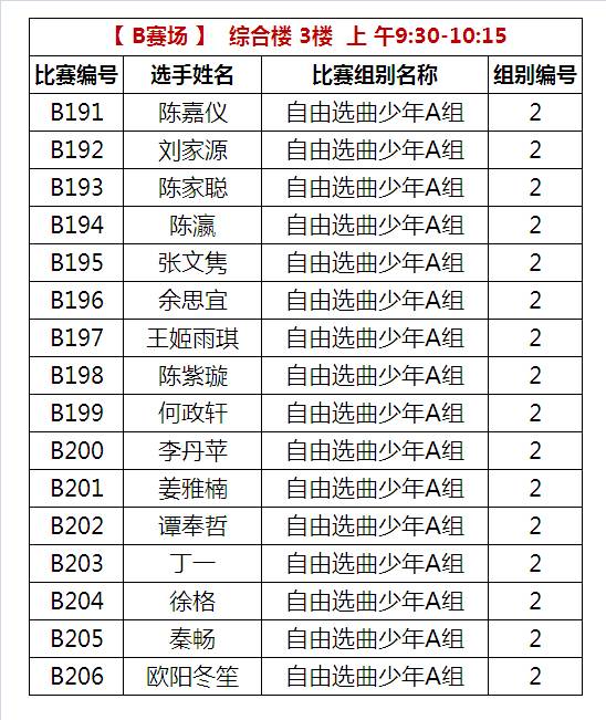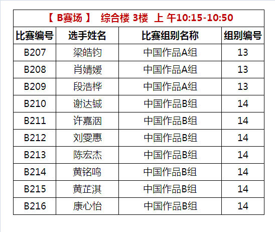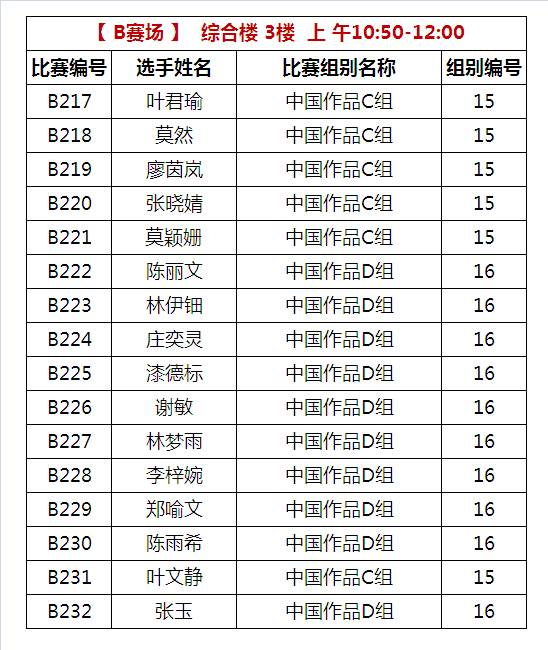 B比赛场 上午比赛时间