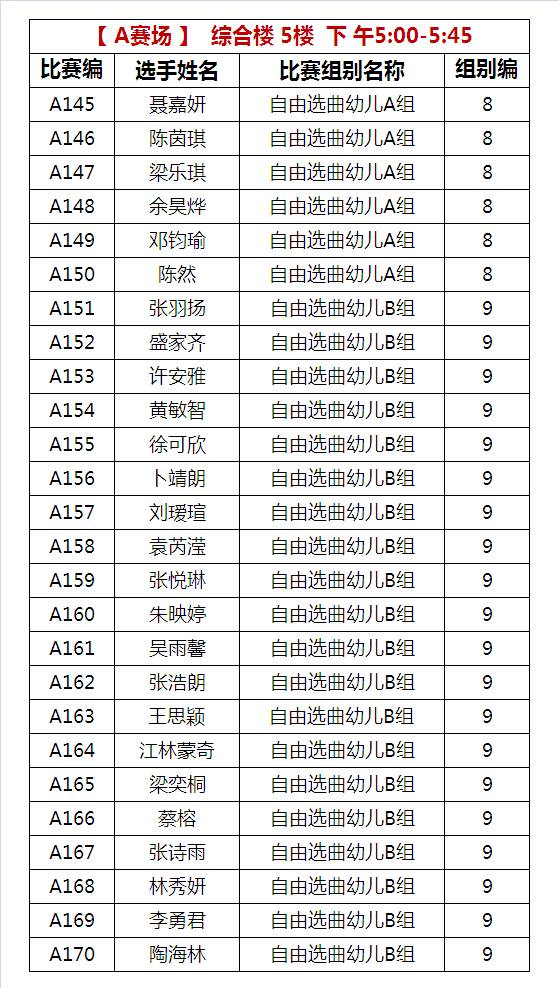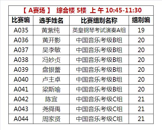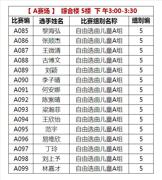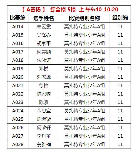 A比赛场 上午比赛时间