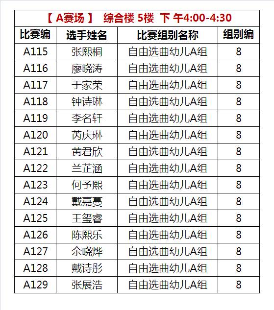 A比赛场下午比赛时间