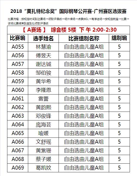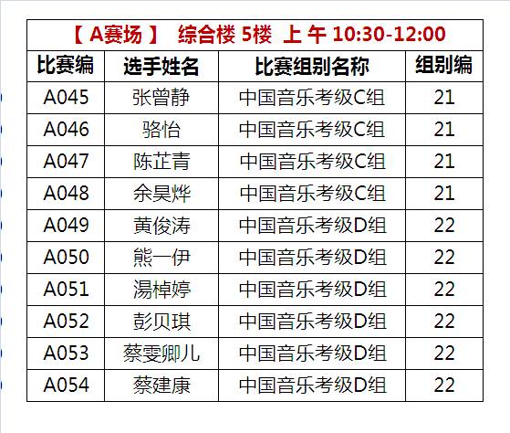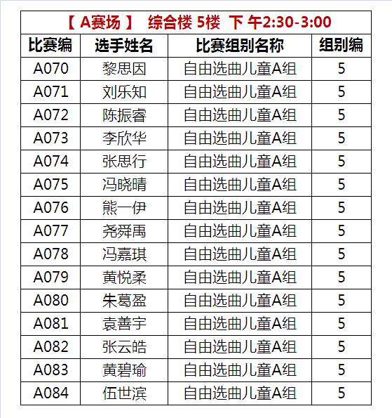 AXX比赛编号的选手在A比赛场5楼进行比赛;