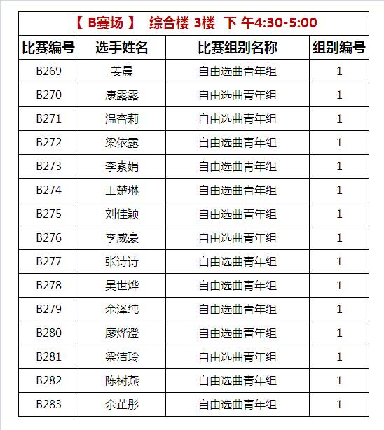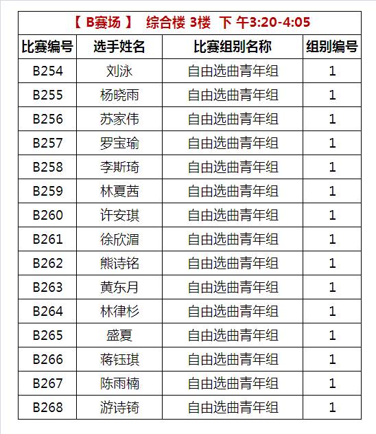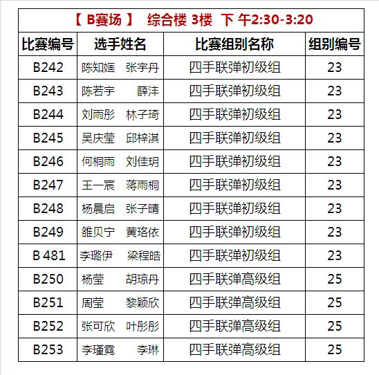 B比赛场 下午比赛时间