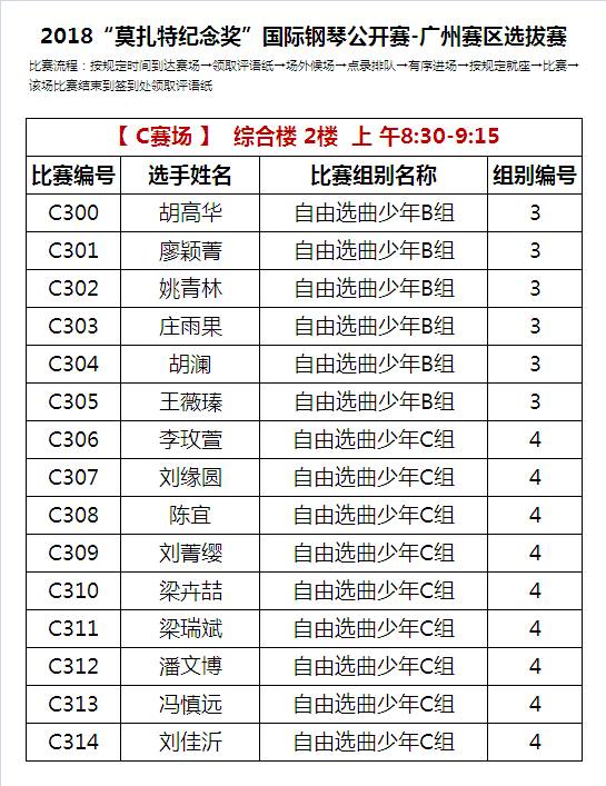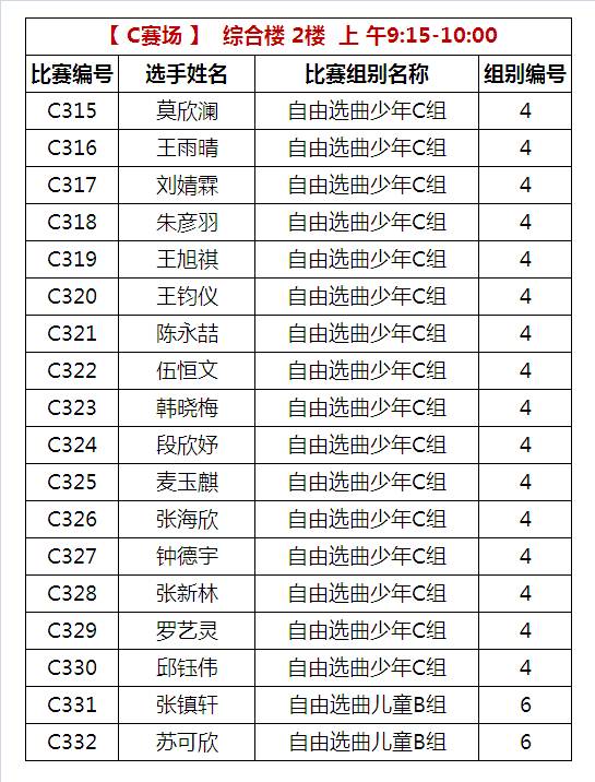 C比赛场 上午比赛时间