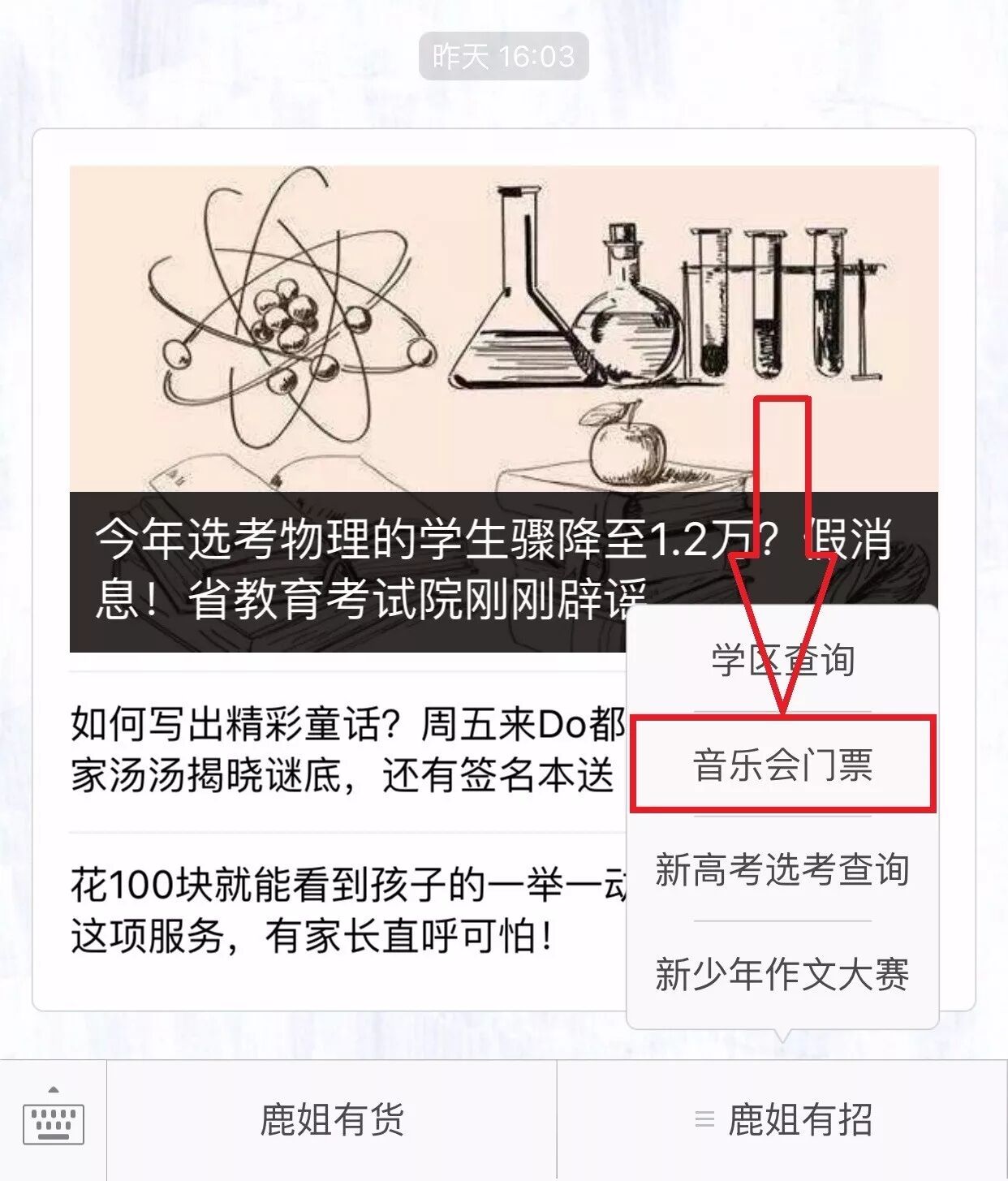 1、关注“升学宝”微信公众号;