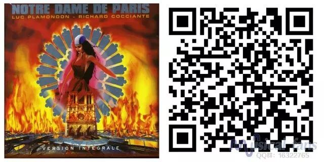 这两版CD是相对而言最容易找到的。有许多别的CD - 包括英语版的CD - 我没来得及听。英语版的甚至有当时还并不出名的Celine Dion参与呢。94版的CD,强推!是你们的诗人Bruno Pelletier演主角……这一版很摇滚,质量爆炸好。也推荐和视频一起食用,感受气氛。官摄Edition Rouge 1989请戳以下二维码。