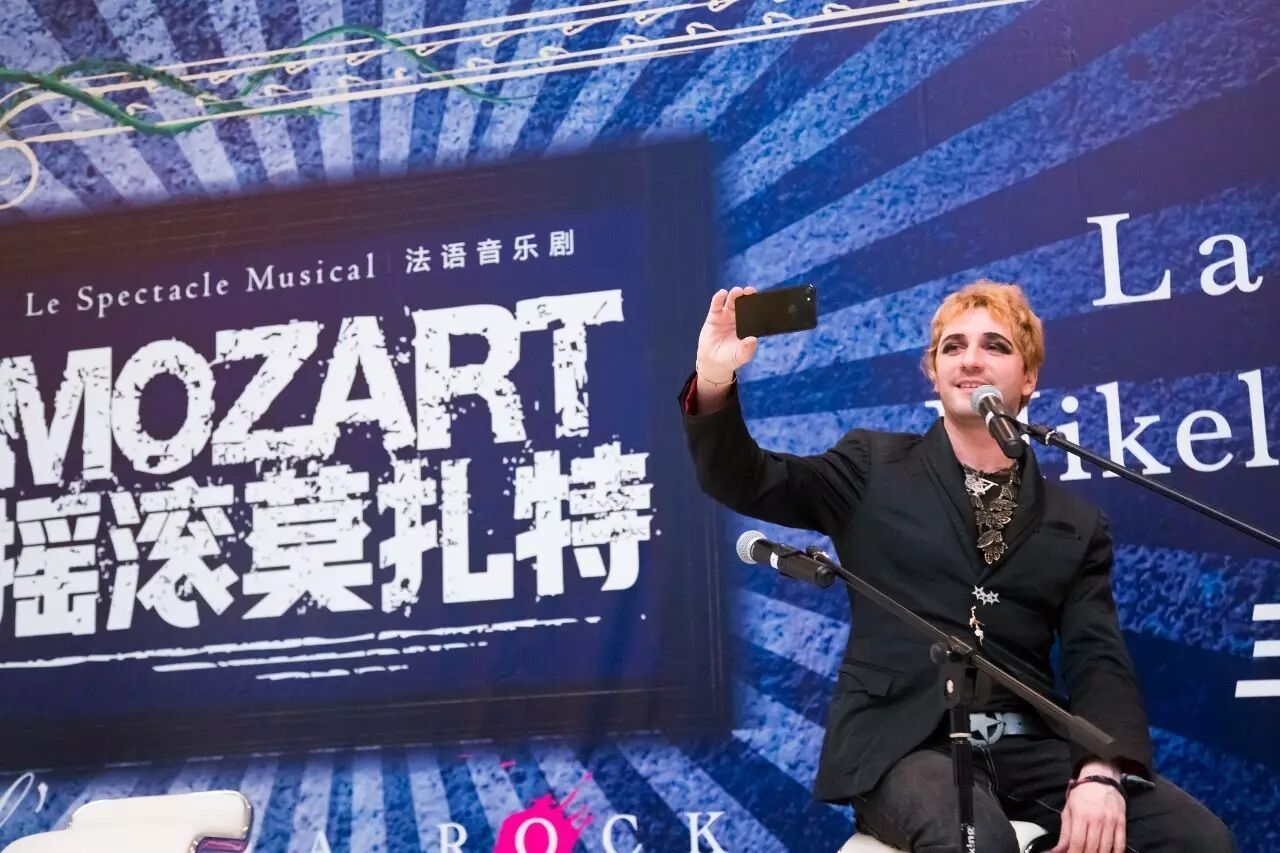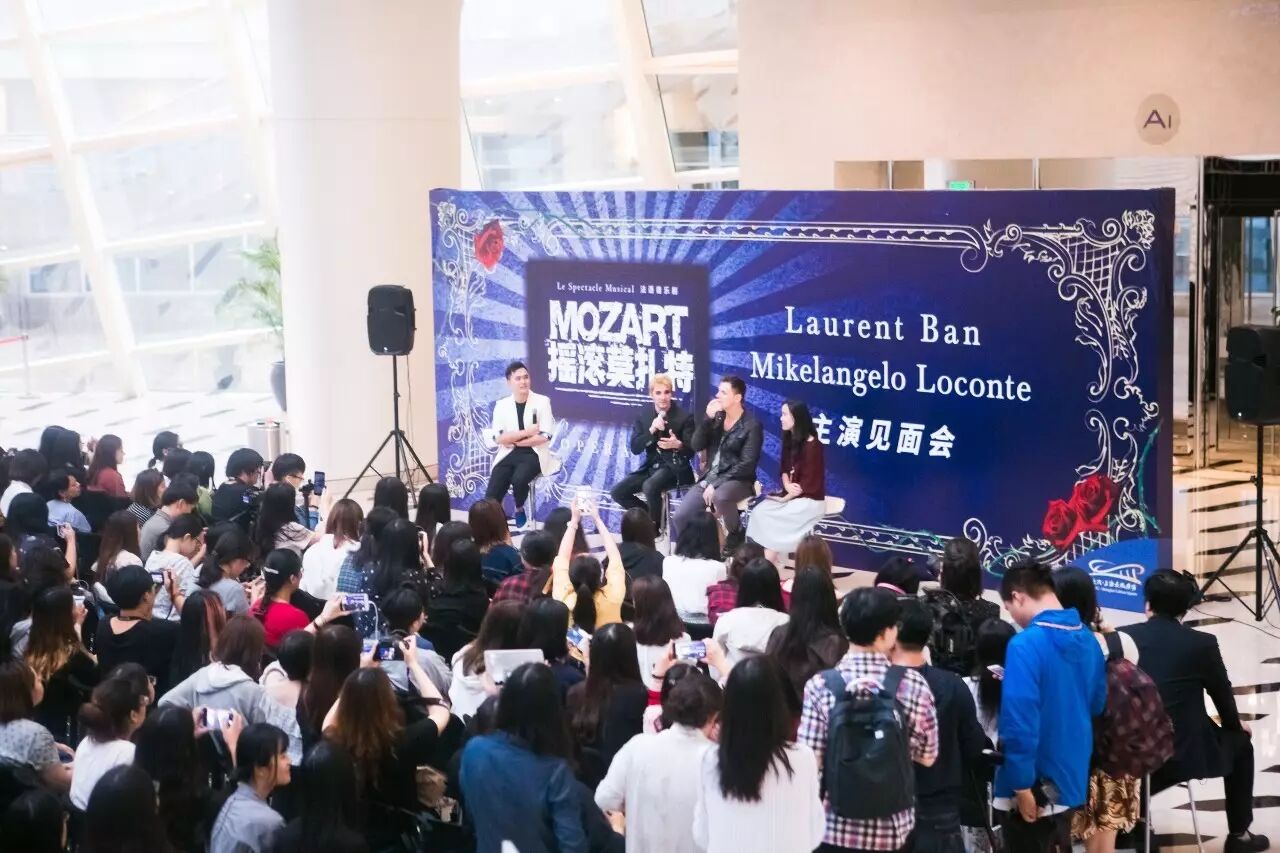 此次见面会更设置了明星演唱环节,原先只安排了一首歌,然而迷妹们的热情感染了两位“人民艺术家”,一连演唱了五首歌,现场宛如小型演唱会,老班更是用中文清唱起了一首献给爸爸的歌——《月亮代表我的心》。饰演莫扎特的小米还就《摇滚莫扎特》中的妆容为迷妹现场化妆,幸运的迷妹激动得热泪盈眶,而小米为迷妹化妆时的专注,再一次引爆现场气氛。虽然距离开演还有两个多月,但观众们已对音乐剧《摇滚莫扎特》的开演表现出了十足热情。