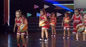 来自河南新乡的小朋友为大家带来《我的篮球梦》,团队中站在前面的都是小姑娘啊,篮球玩这么好,帅帅帅!