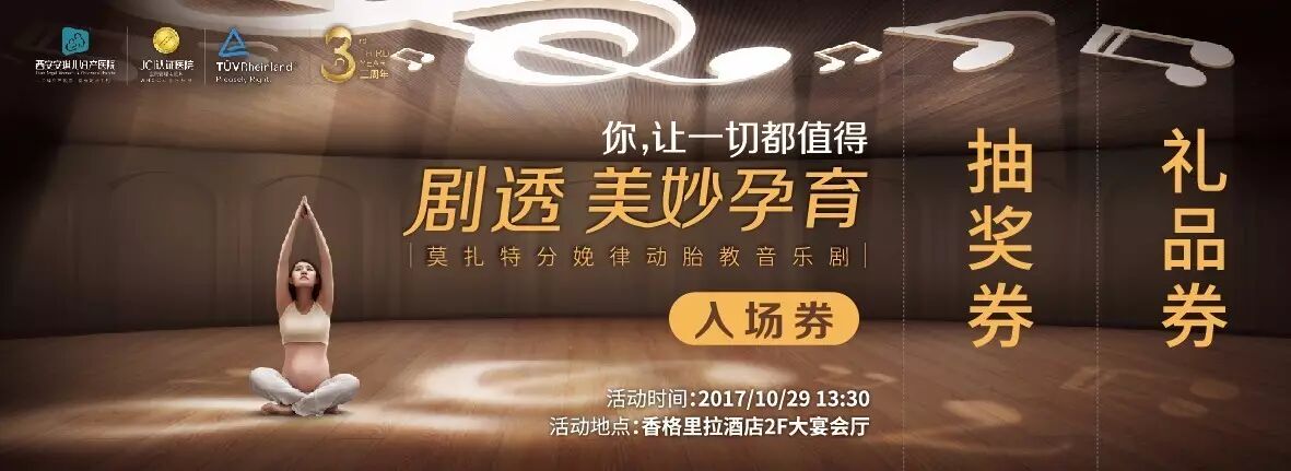 10月29日13:30,剧透美妙孕育——安琪儿3周年莫扎特分娩律动胎教音乐剧演出将在西安香格里拉大酒店举行,50人专业交响乐团演奏,经典再现被誉为胎教必听的莫扎特经典曲目《安魂曲》《摇篮曲》《圣母颂》《嬉游曲》等等,结合现场孕期瑜伽表演与教学,带给胎宝最专业的胎教。