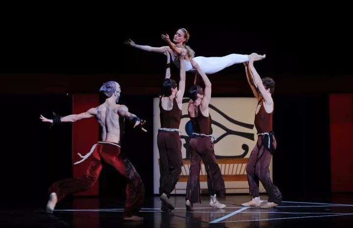 在音乐中一步一步添加动作和画面,而舞美重现了古埃及的风格,同时呈现出一种神秘的景象。
