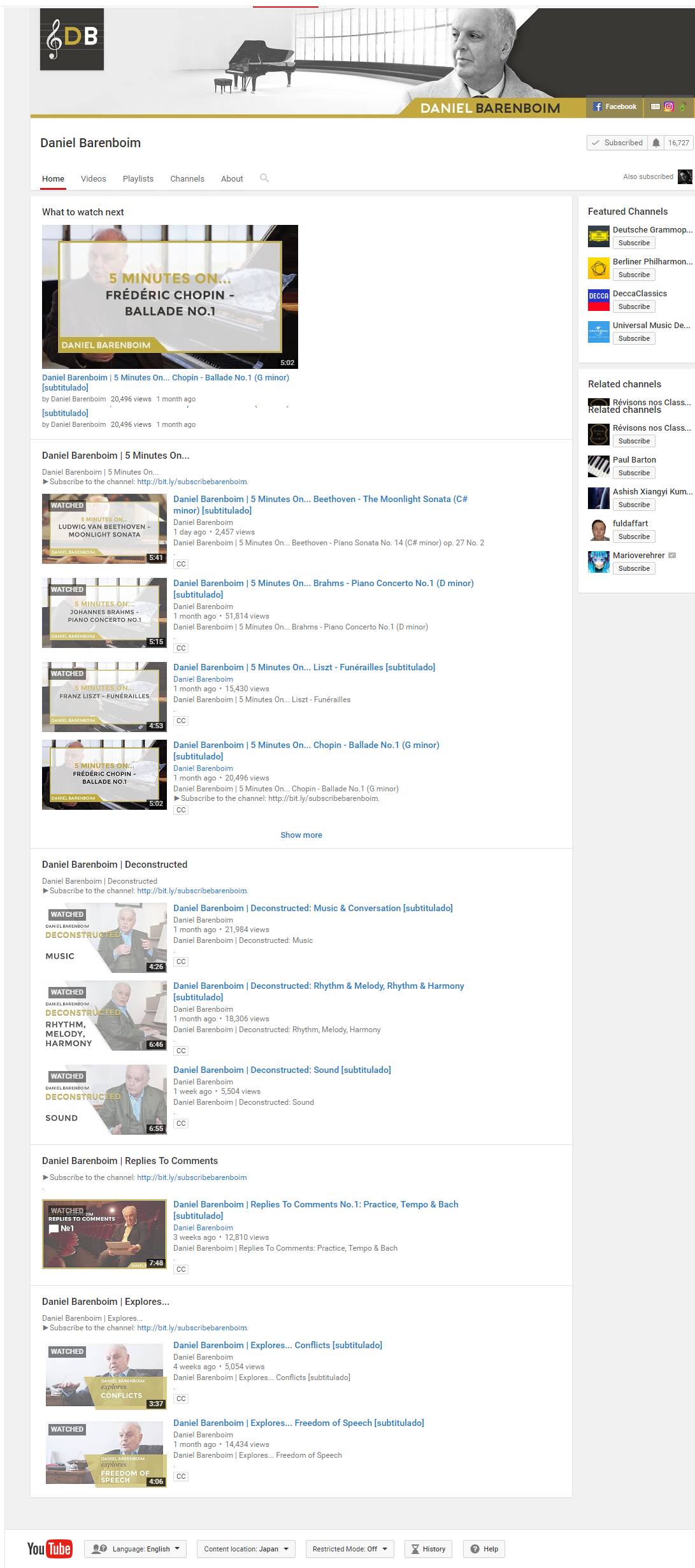 Youtube于8月份开始为丹尼尔·巴伦博伊姆开通了由他的姓名缩写DB命名的频道。在这一频道中,巴伦博伊姆直面大众,以每周一次的频率,上传制作精良的视频。视频的内容包罗万象,包括社会学、,也接受大众提问。