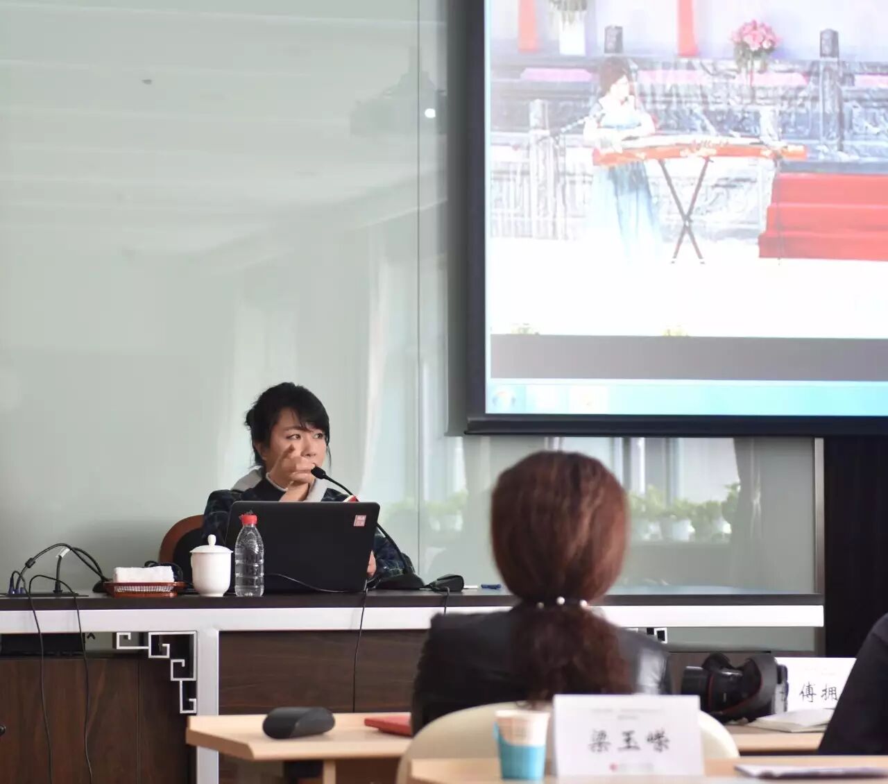 古筝是历史悠久的优秀传统文化之一。来自江苏的任洁,是南京艺术学院的副教授,古筝代表作品有《西域随想》、《箜篌引》、《山的遐想》、《望秦川》,2005年作品先后获得文华艺术院校奖金奖、中国音乐金钟奖金奖。2006年获朝鲜国际艺术节国院艺术奖器乐独奏家金奖。她是目前国内音乐界首位同时问鼎中国音乐金钟奖及政府文化奖的青年古筝表演艺术家。她以《筝叙漫谈》为题向大家介绍了古筝的起源与发展,并现场播放了自己演奏的作品,气韵绵长、清新婉约的风格带来听觉的享受。