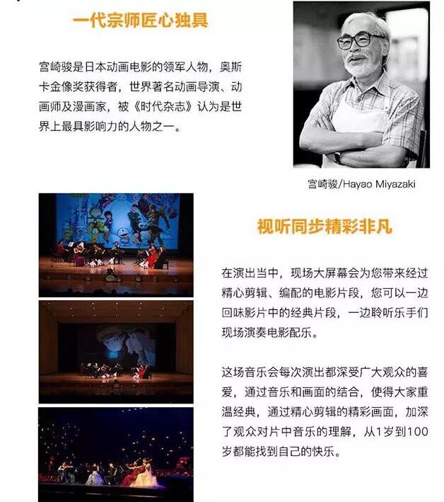 久石让,以他那充满童心,却又能够阐释哲理的灵性音乐创作,被人们称为触动灵魂的音乐。宫崎骏,可谓是日本动漫当中最具知名度和最受大家喜欢的作品。当久石让遇上宫崎骏,一部部经典动漫随之诞生,一首首音乐传奇划过心际。他们是世界动漫史上的传奇,他们将世界动漫带入了一个黄金时代。感动了70、80、90后的三代人,留下了美好无比的童年回忆。一个个经典的动漫形象,一曲曲熟悉的儿时音乐,承载着一段段童年的美好憧憬和回忆,也在无数个夜晚伴着我们进入甜蜜梦境。