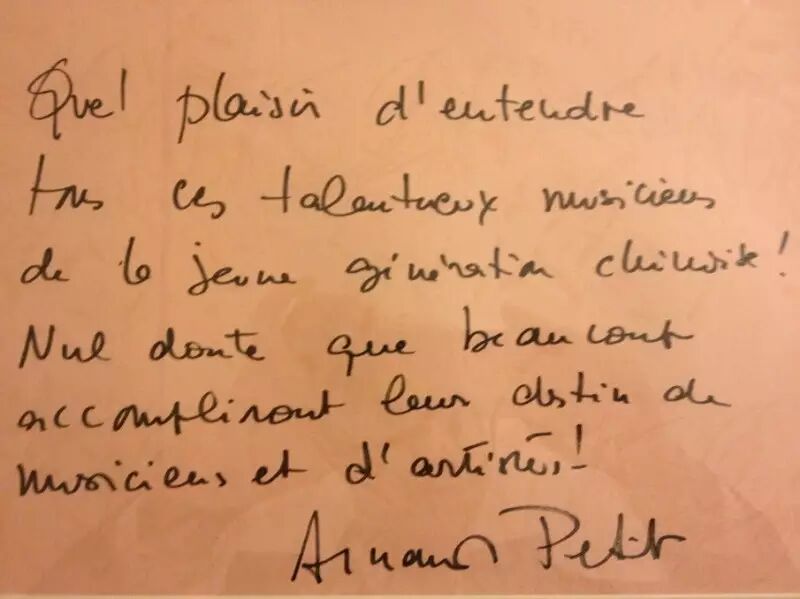 ▲法国巴黎布朗克梅妮国立音乐学院院长贺词