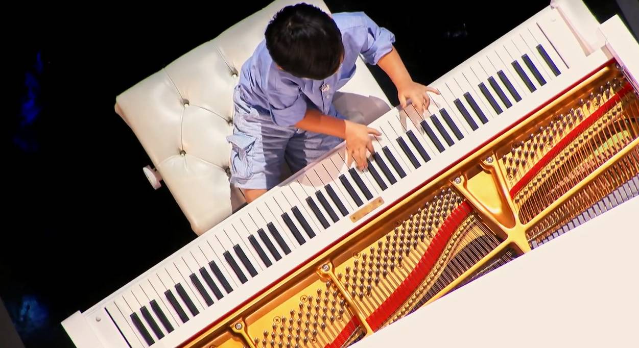 他父母给哥哥布兰顿买了一台玩具电子琴