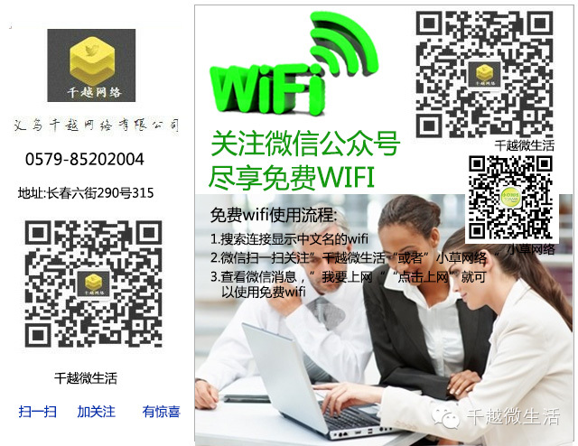 关注千越微生活,免费wifi随时享