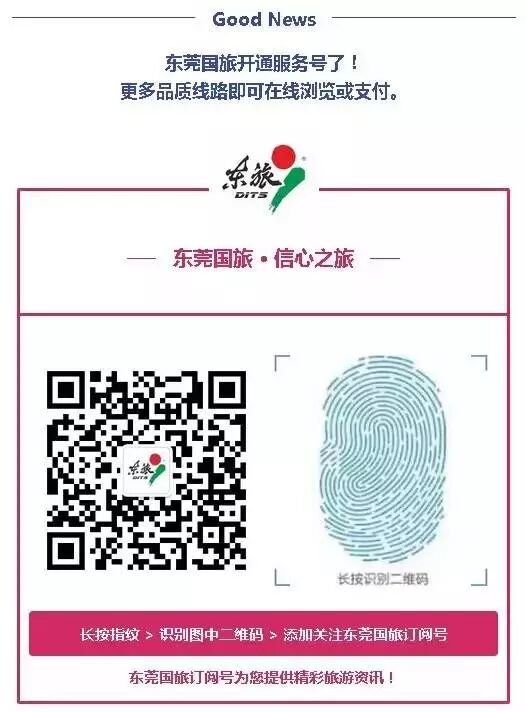 更多精彩资讯请关注东莞国旅服务号:dits-since1984