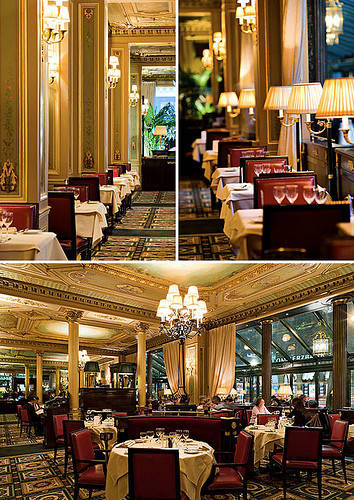 和平咖啡馆,或称之为和平饭店,游超过150年历史,紧邻巴黎歌剧院,沿街是绿色玻璃房,内部豪华无比——印花地毯,镀金圆柱和彩绘天花板。这里拥有巴黎最大的露天咖啡座,毕加索,王尔德,戴高乐将军和历任总统都曾光顾。