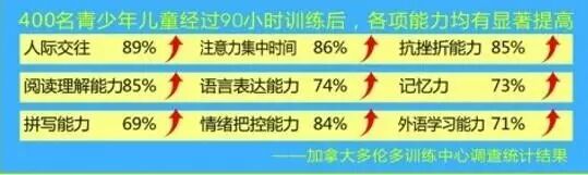 加拿大多伦多中心给400名青少年儿童经过90小时训练后的效果: