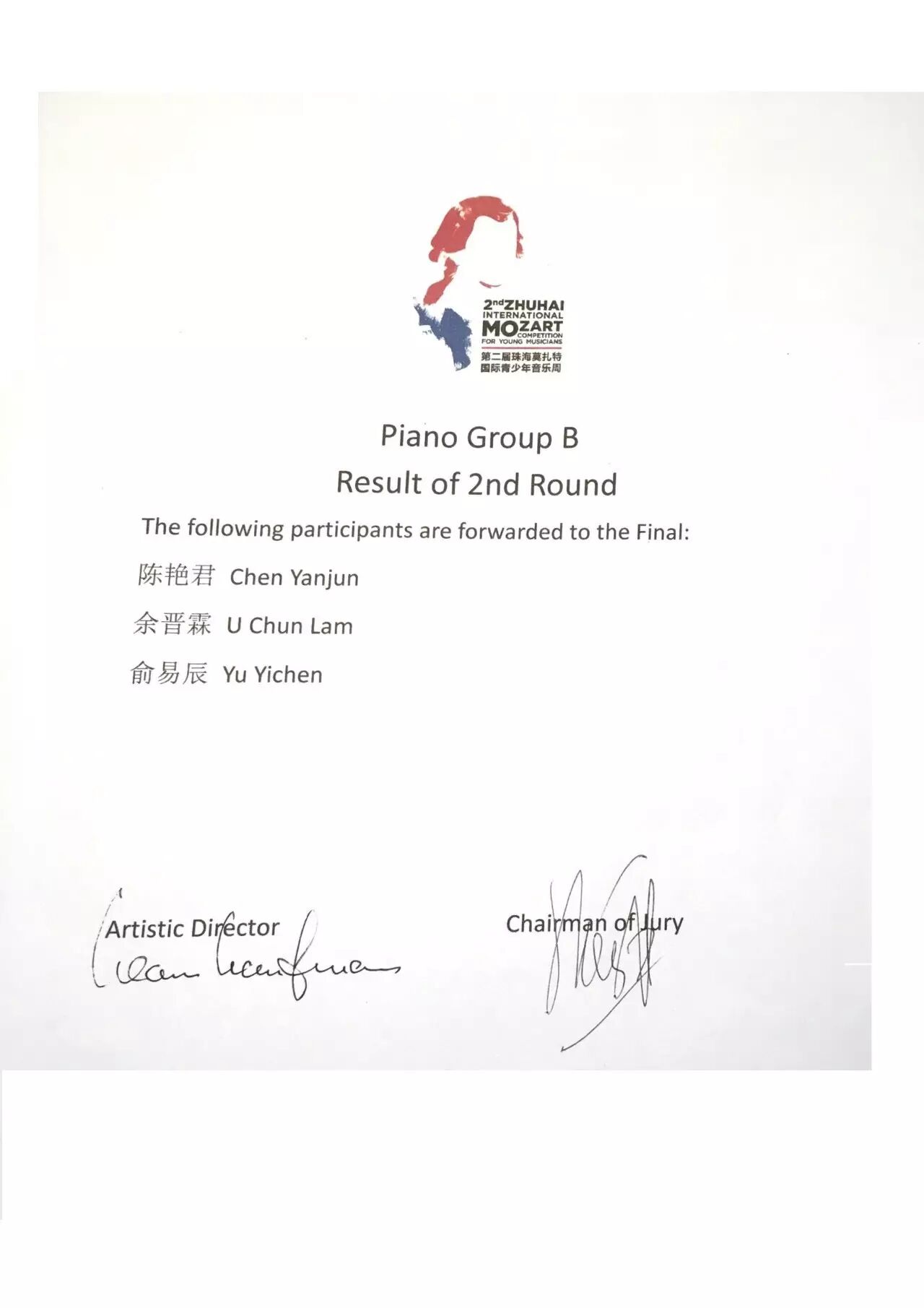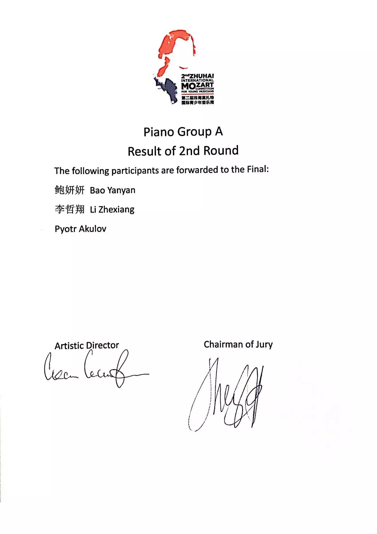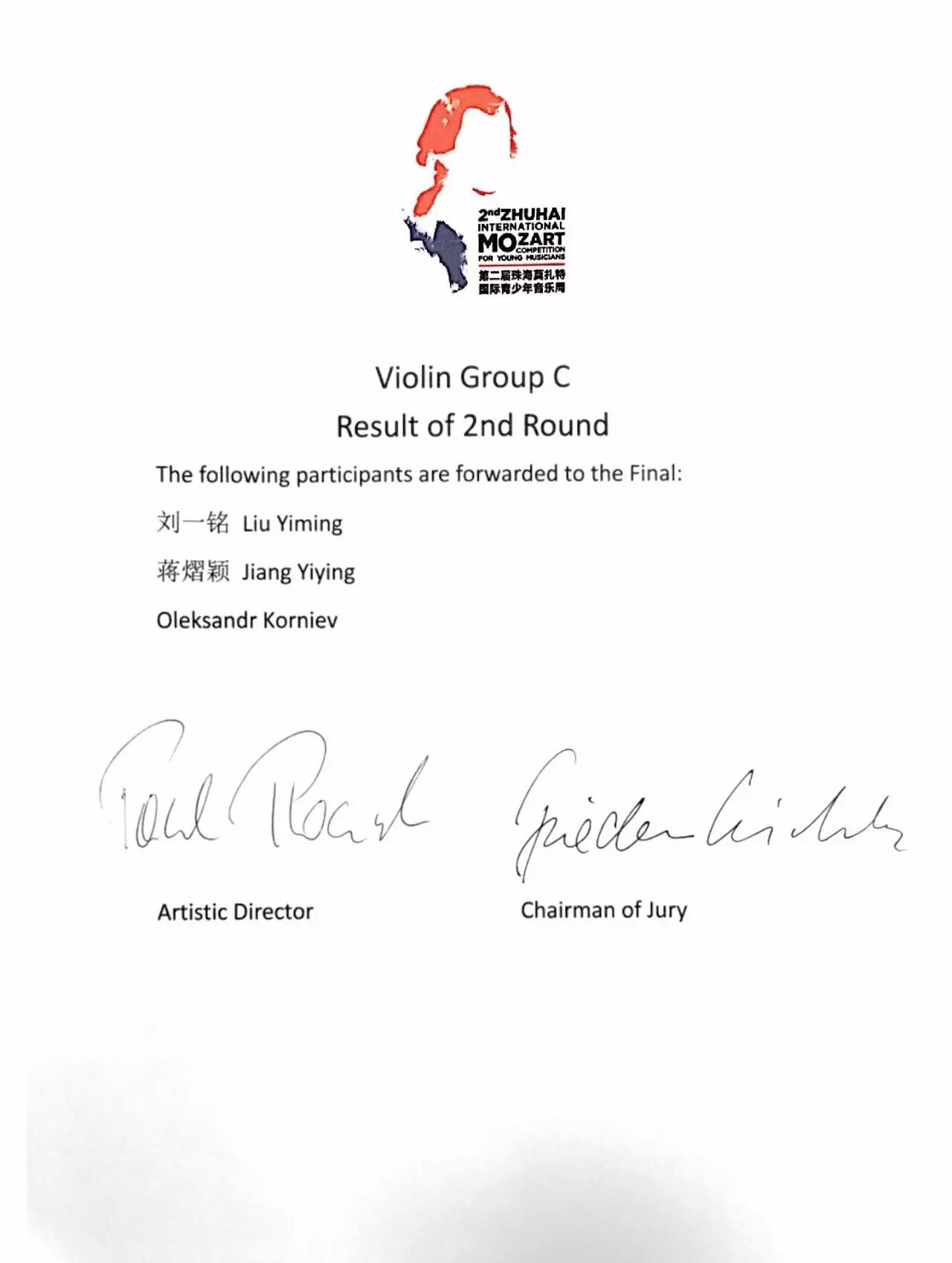 9月18日傍晚,随着第二届珠海莫扎特国际青少年音乐周钢琴及小提琴C组晋级复赛的选手们完成他们复赛阶段的演奏,本届音乐周复赛阶段的比赛正式结束,从今日起,珠海莫扎特国际青少年音乐周将进入“决赛时间”。(文末附各组别晋级决赛名单)