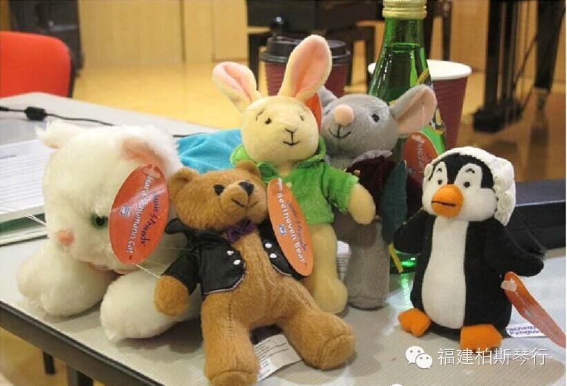 《小小莫扎特音乐教室》主人翁:贝多芬熊、莫扎特鼠、克拉拉猫、企鹅博士、可爱兔子