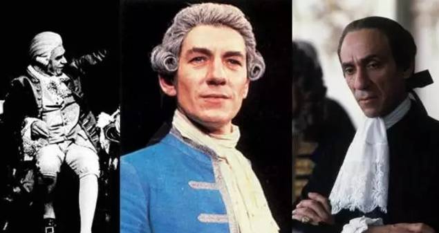 ▲左起为伦敦首演版萨列里,保罗·斯科菲尔德(Paul Scofield)饰演,百老汇版由伊恩·麦克莱恩饰演,以及电影版男主F.. Murray Abraham)