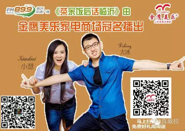 【微信合作请致电:0539--2795555】(请在周一到周五9点到18点拨打哦。)《茶余饭后话临沂》由“买家电全临沂就到金鹰美乐2020188”,金鹰美乐家电商场独家冠名播出。金鹰美乐O2O商城:www.jinyingmeile.com