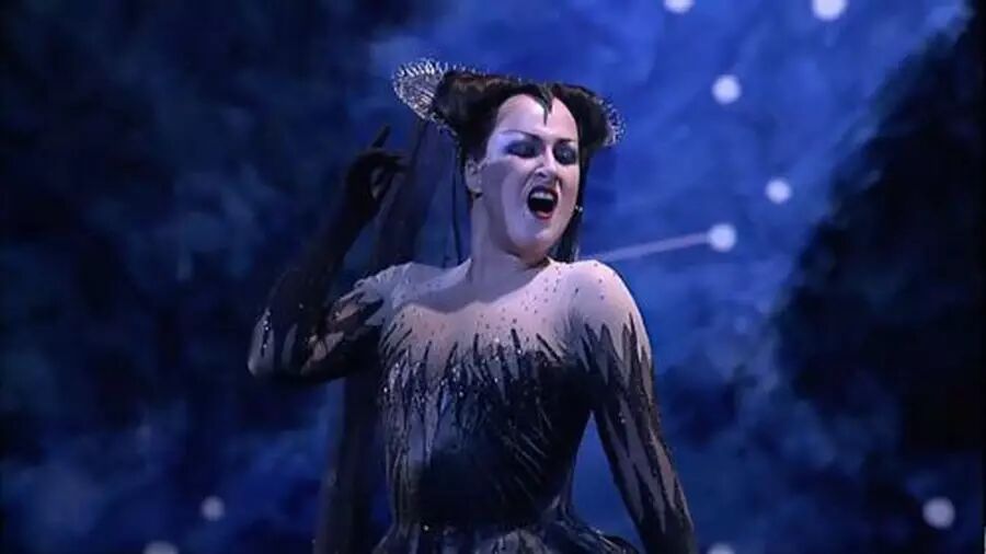 “夜后咏叹调”取自莫扎特歌剧《魔笛》的一首咏叹调。是一首花腔女高音的试金石。高音到High “F”。夜后是一个相当复杂的人物,有母性的本能,也有暴虐凶狠的性格特点。莫扎特以高难度的华彩乐段来刻划她愤怒至绝的戏剧冲突矛盾。演唱者必须在极高的高音音域,以快速的唱法出色地处理乐曲的重复音和断音,尤其是伴随长笛的演奏,两者似乎进行着一场发声技巧的高对抗高密度竞赛,突出了夜后对女儿的失望、对祭司的痛恨狠绝,实在震撼力不小。莫扎特的女高音咏叹调并不是专为了炫技,而是有实际意义的刻划表达,冲上如此的高音,绝对是对人声极限的挑战。在高音区上蹿下跳、弹跳自如演绎,用整个人的表演气场,表情动作将观众笼罩在音乐意境里面,抒情戏剧女高音在这段高难度选段上飙高音飙华彩的精彩瞬间,让我们喝彩不断。
