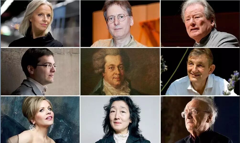 ▼从左上起顺时针:安妮·索菲·冯·奥特,罗伯特·列文,马里纳,平诺克,布伦德尔,内田光子,弗莱明,皮芒特西)