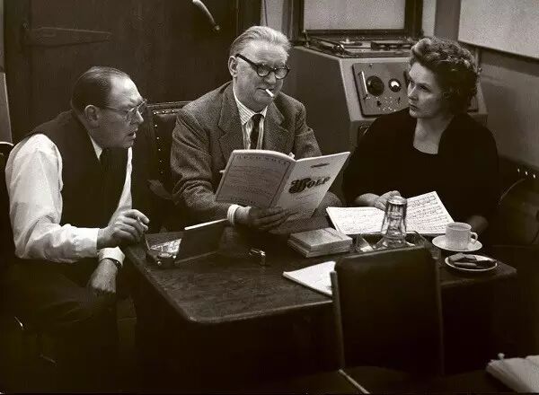 斯瓦茨科普夫(右)和丈夫里格(中)一起,参与了大量的唱片录制工作。画面最左,是艺术歌曲伴奏之王,杰拉德.摩尔。