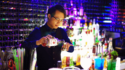 在高分贝的音乐声中,调酒师的姿态也让人着迷。一杯杯颜值爆表的鸡尾酒,拥有着动听的名字~