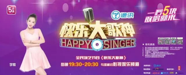 一秒五块,敢唱就来;点亮公益梦想,引爆快乐极值!全民综艺大K歌途讯《快乐大歌神》浙江影视娱乐频道每晚19:30-20:30精彩呈现,请锁定收看!