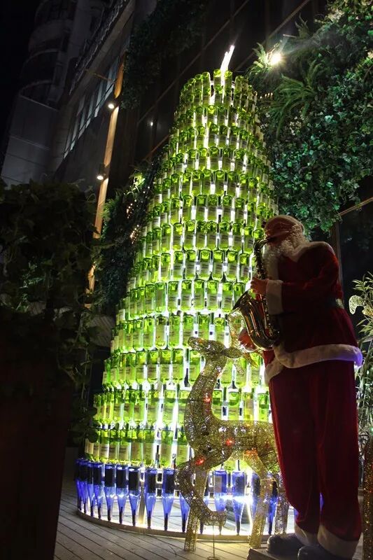 胡桃里红酒瓶圣诞树