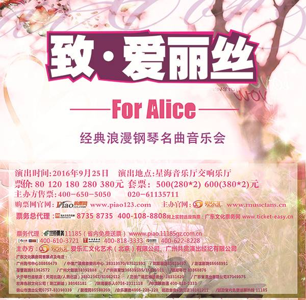 爱乐汇•“致•爱丽丝”经典浪漫钢琴名曲音乐会广州站