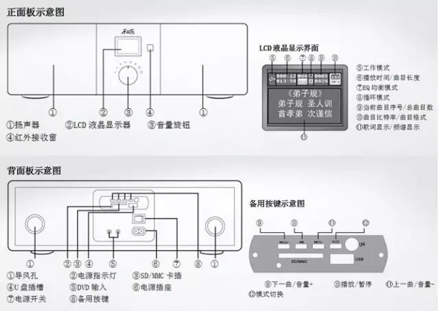 ·支持U盘和SD卡/MMC卡播放功能。
