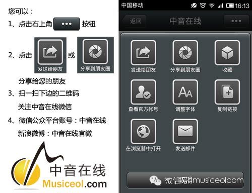 【新朋友】点击标题下面蓝色字“中音在线”关注。 【老朋友】点击右上角,转发或分享本页面内容。