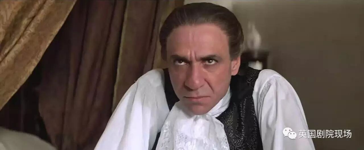 主创大换血就已经够闹心了,两位主演其实也状况频出。首演版莫扎特的演员是当时年仅三十岁的西蒙·卡洛(Simon Callow),他进组之后一度非常忐忑,拿捏不好莫扎特的情绪和动作幅度。饰演萨列里的老戏骨保罗·斯科菲尔德(Paul Scofield)最初只是在排练中延续自己的庄重风格,后来在情绪并不稳定的艰难探索中,才逐渐进入到萨列里角色所承担的“天人之辩”境界中。