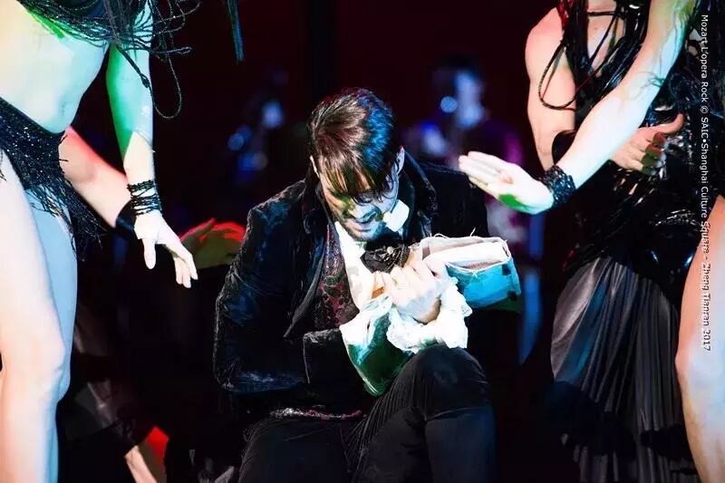 弗洛朗·莫特(Florent·MOTHE)用自己熟稔的演唱功底,将萨列里的所有情感完全融化在歌声中,伴随着摇滚的鼓点节奏,相比起“莫扎特”的真挚与可爱,这位“仇敌”更接近凡人的嘶吼所带来的震撼力,仿佛更能触动我们内心的高潮,而这也因此掀起了整场演出中最嗨最燃的部分。