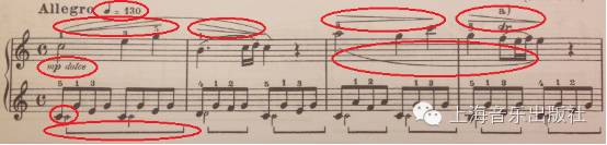 但是在早期的净版谱里面,比如德国的彼德斯版(C.F.Peters),这就凭空多了一个mf的力度记号(圈红的地方):