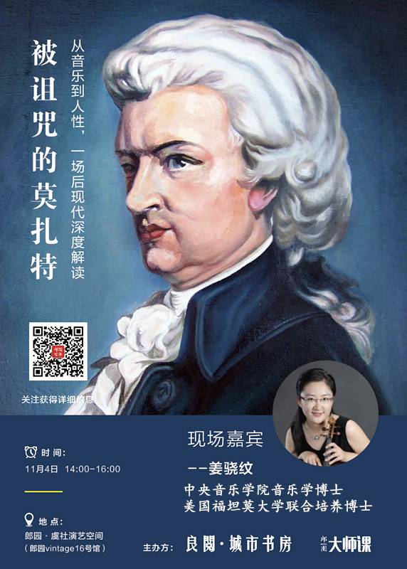 姜老师将会从音乐出发,以整个莫扎特生活的时代为背景,从审美角度、美学价值出发,将莫扎特短暂而辉煌的一生进行活化和现象化。