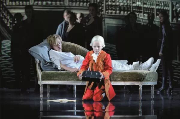 值得一提的是,剧里有两个“莫扎特”,一个是成年莫扎特,还有一个与之如影随形的小莫扎特。小莫扎特是奋笔疾书的音乐天才,成年莫扎特是生活化的,最后,童年莫扎特把成年莫扎特“杀”死了。