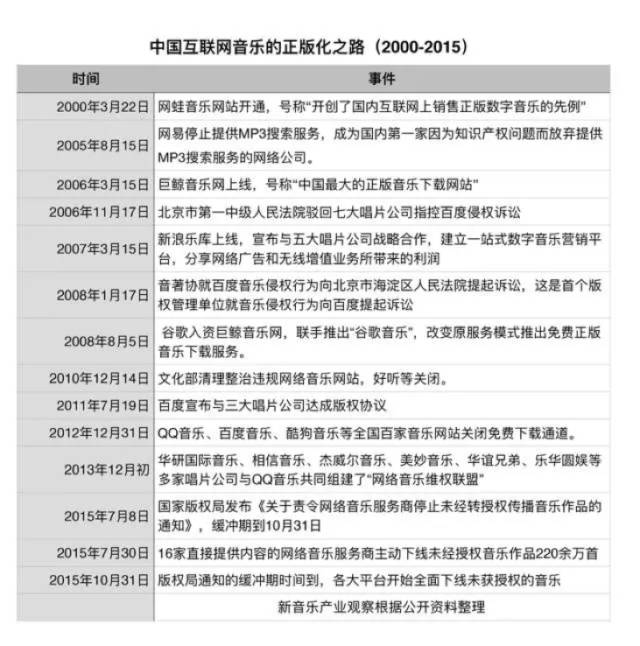 2015年、2016年,中国数字音乐久旱逢甘霖,迎来了跨时代的里程碑。2015年7月,国家版权局颁布“最严版权令”,版权合法化和数字音乐销售终于有法可依。