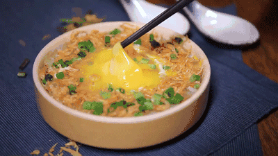 轻轻一戳,温泉蛋爆浆一般的涌出来,香糯的萝卜糕配上虾米和蛋液更加鲜香味美,原来萝卜糕还能这样吃!厉害了!