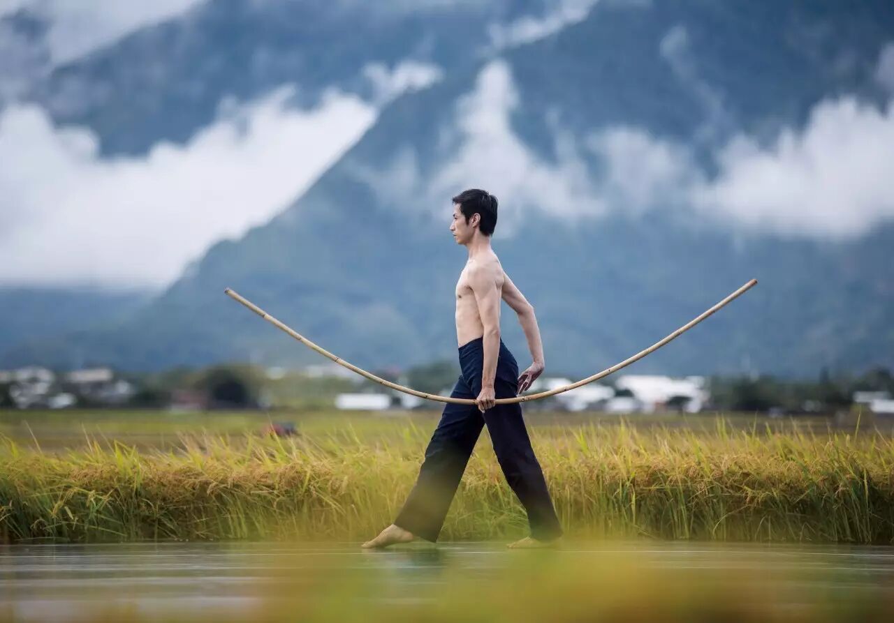 那年十一月,我们在收割后的池上田间铺上地板,稻浪作背景,演出「薪传」中的「渡海」和「稻禾」选段,向给我们感召,给我们协助的池上友人致意。演完后,走在池上街头,人人都笑裂了嘴,说好看,说云门要年年到池上。