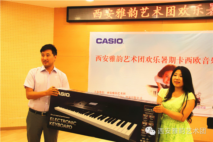 鉴于西安雅韵艺术团在社会力量办学艺术教育领域作出的杰出贡献,卡西欧(中国)贸易有限公司西安分公司为西安雅韵艺术团带来惊喜——赠送卡西欧明星产品 高端电子琴7600一台,作为艺术团比赛专用琴
