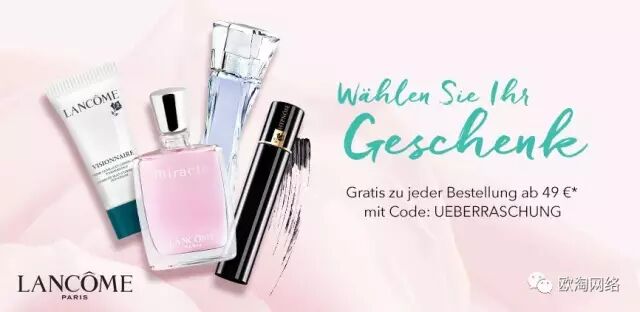 Douglas全场满39欧,输入优惠码: UEBERRASCHUNG ,送 Lancome 小赠品一个