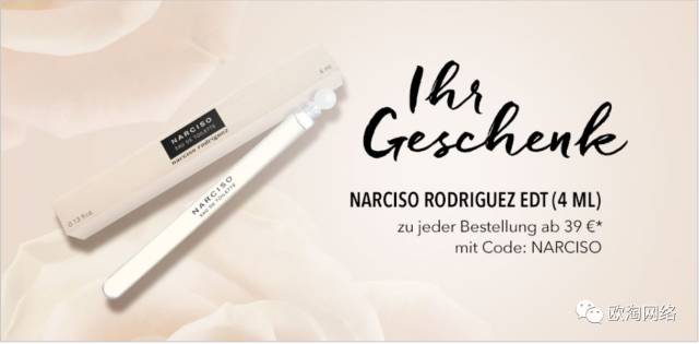 全场满39欧,输入优惠码:NARCISO,送:NARCISO香水小样