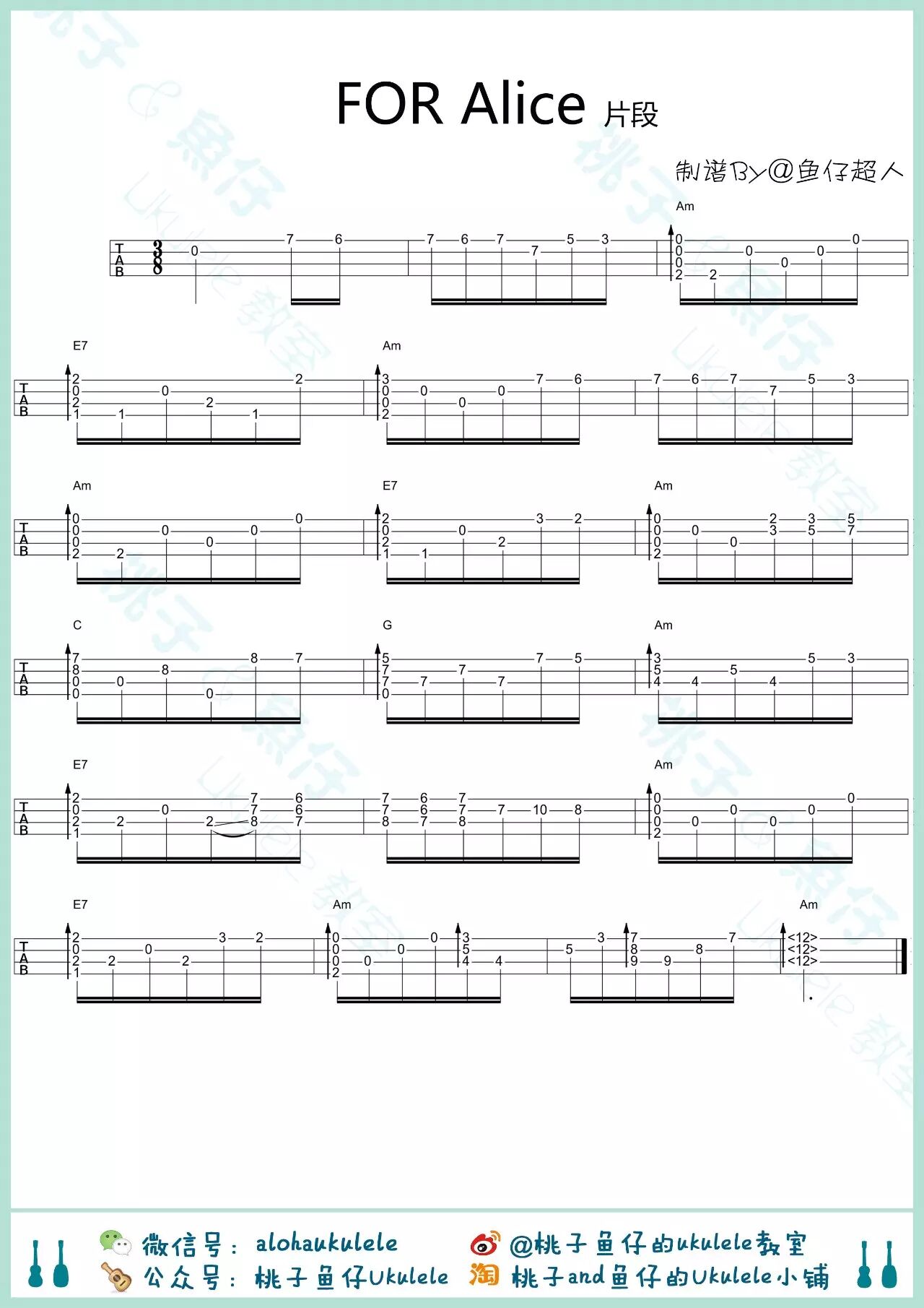 第一首周五指弹练习曲目——改编自贝多芬的经典钢琴曲 《致爱丽丝》,鱼仔在片段上做了一些简化和改编,相信开头的“噔噔 噔噔 噔噔”大家都耳熟能详了。相传这是一首贝多芬作给心上人的曲子,所以大家快快把它练起来,弹给她(他)听哦;)